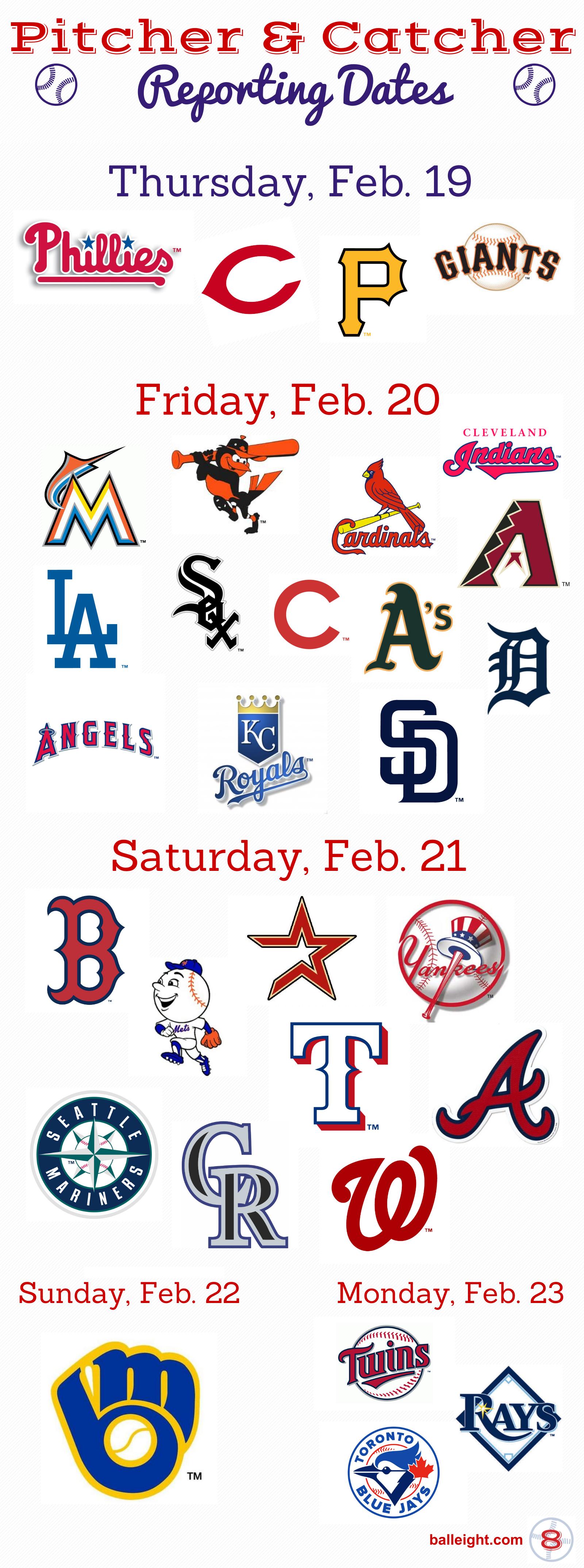 So, here are the official reporting dates for all 30 teams, in handy infographic form: